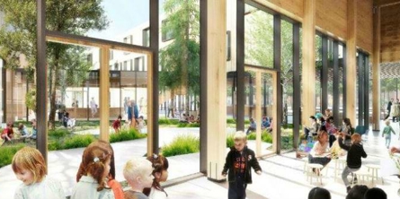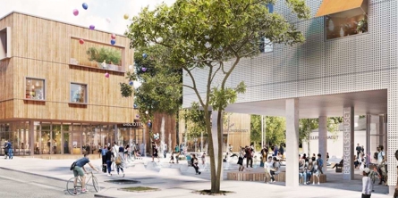 Verdenspladsen er det samlende midtpunkt, der forbinder alle faciliteterne i Sports- og Kulturcampus og inviterer til bevægelse, leg og ophold.